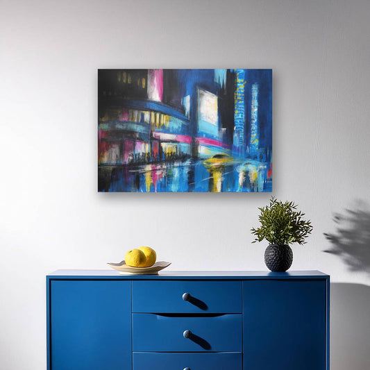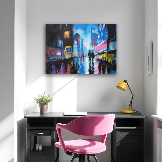 Rain Kissed Neon Dreams - Night City Painting on Canvas