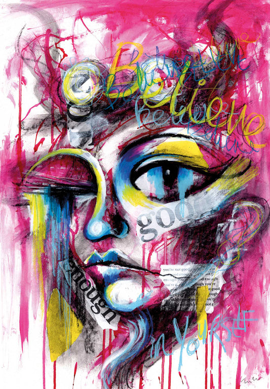 Believe in Yourself - Bold Abstract Portrait with Graffiti Style