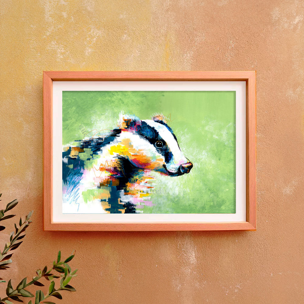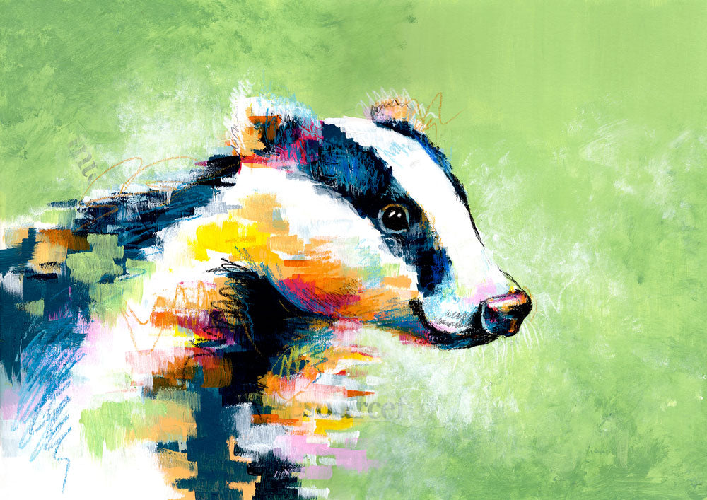 Badger of Honour - Original Badger Painting - Colourful Abstract Animal Wall Art