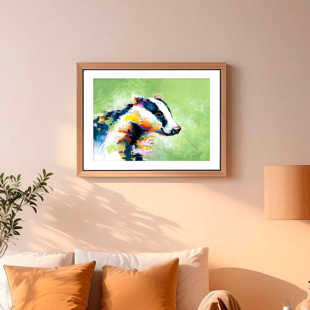 Part of a larger collection of British wildlife art, this painting stands out as a bold, contemporary piece, perfect for nature lovers and those looking to make a statement with their home decor. Whether placed in a living room, bedroom, or office, “Badger of Honour” brings character, charm, and a splash of colour to any space.