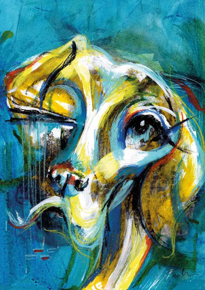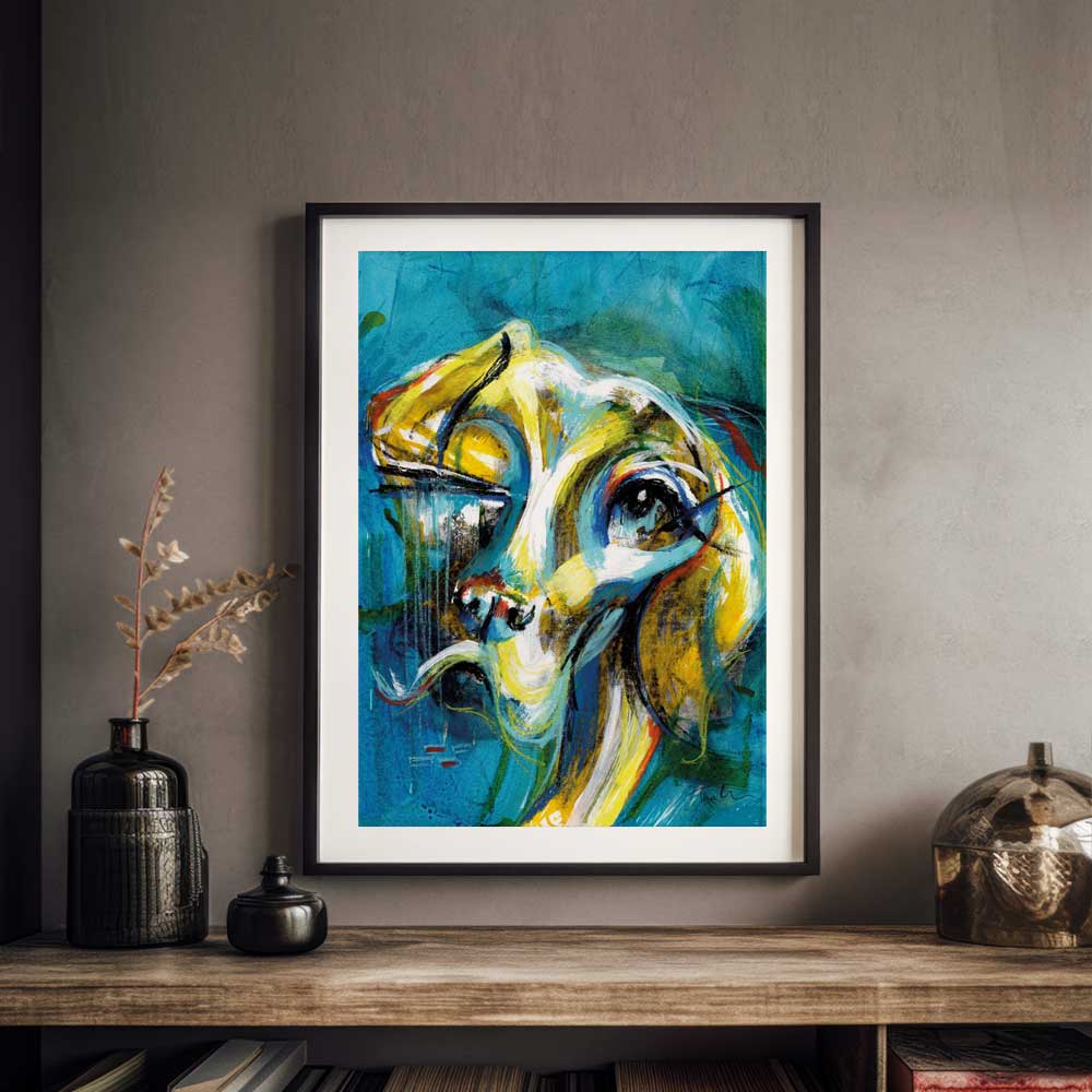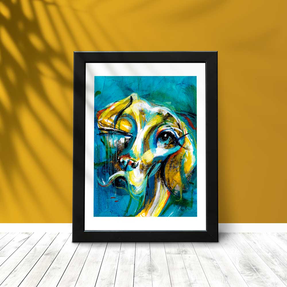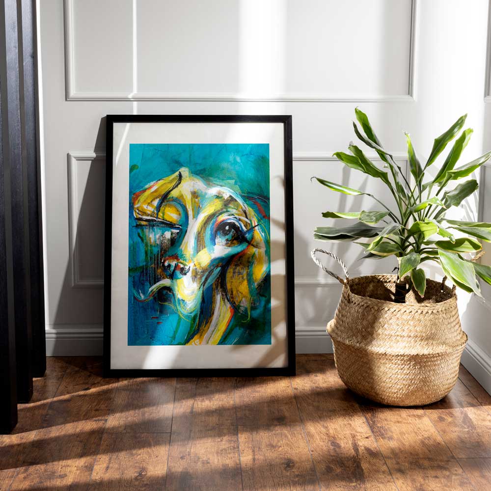 An art print based on an original hand-painted mixed media abstract face painting created by Tara Roskell.
