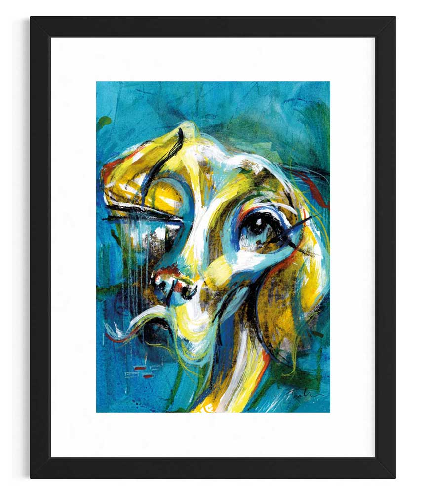 I relished the challenge that this piece presented. Typically, my artistic focus leans towards human-style faces. So, it was an interesting departure to paint an animal in my signature style.