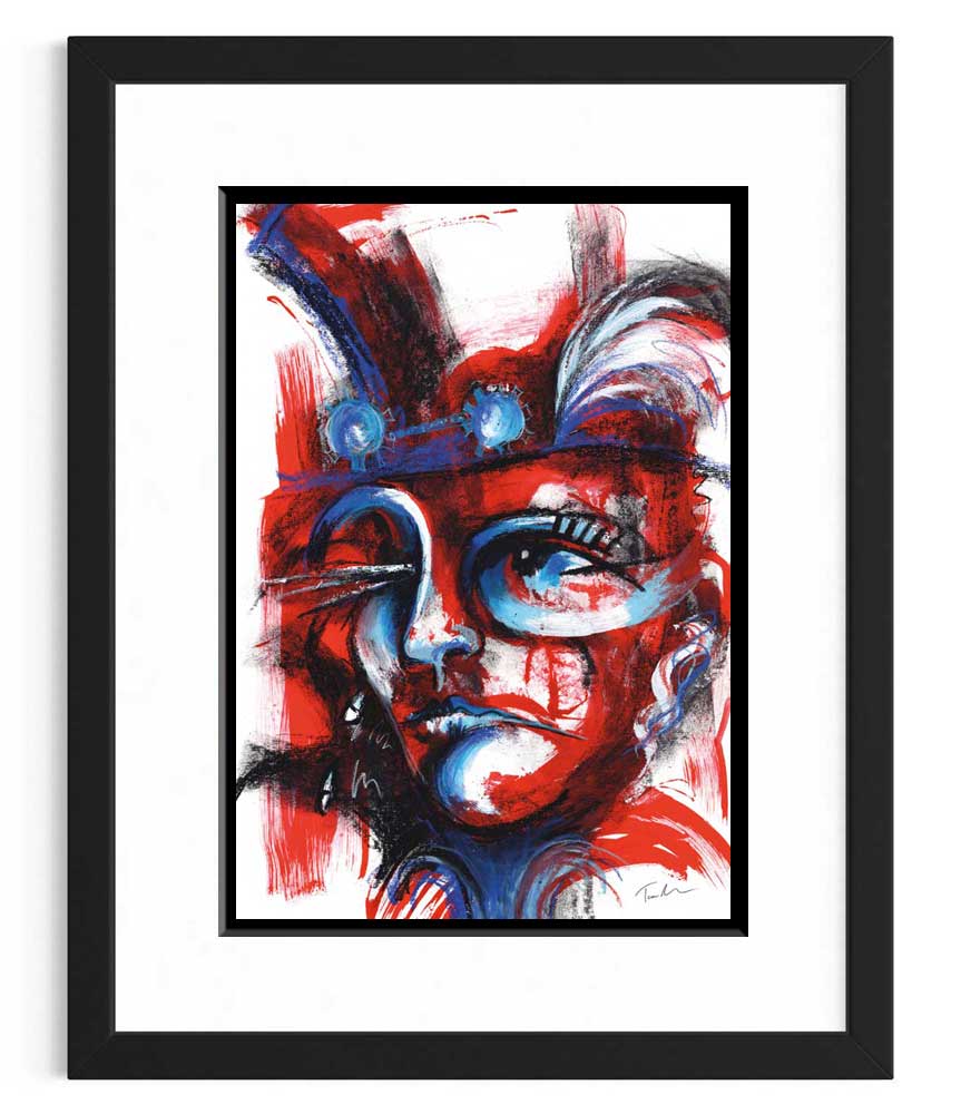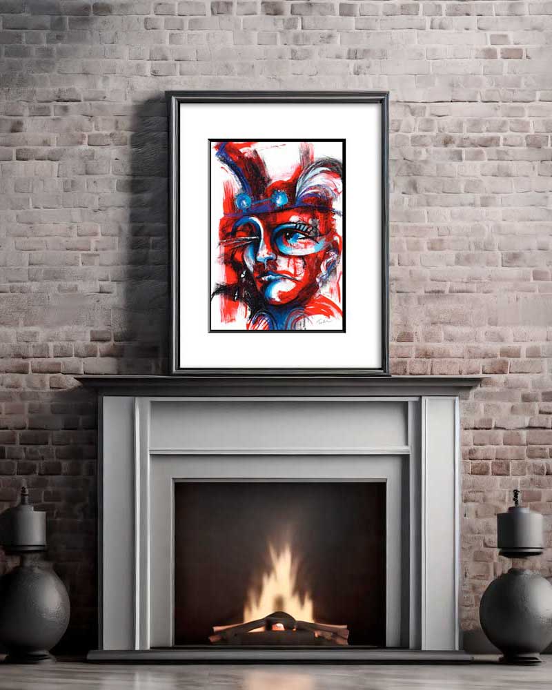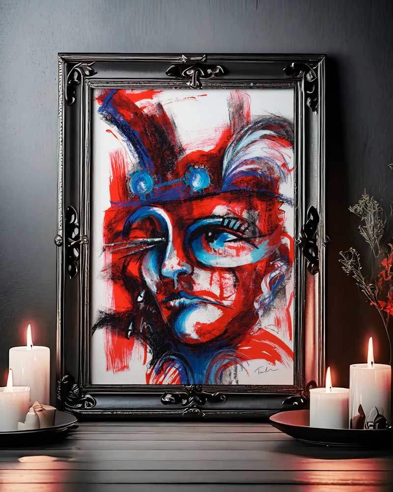 An art print based on an original hand-painted mixed media abstract face painting created by Tara Roskell.