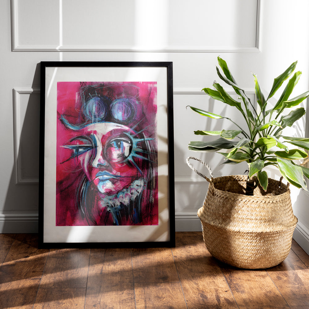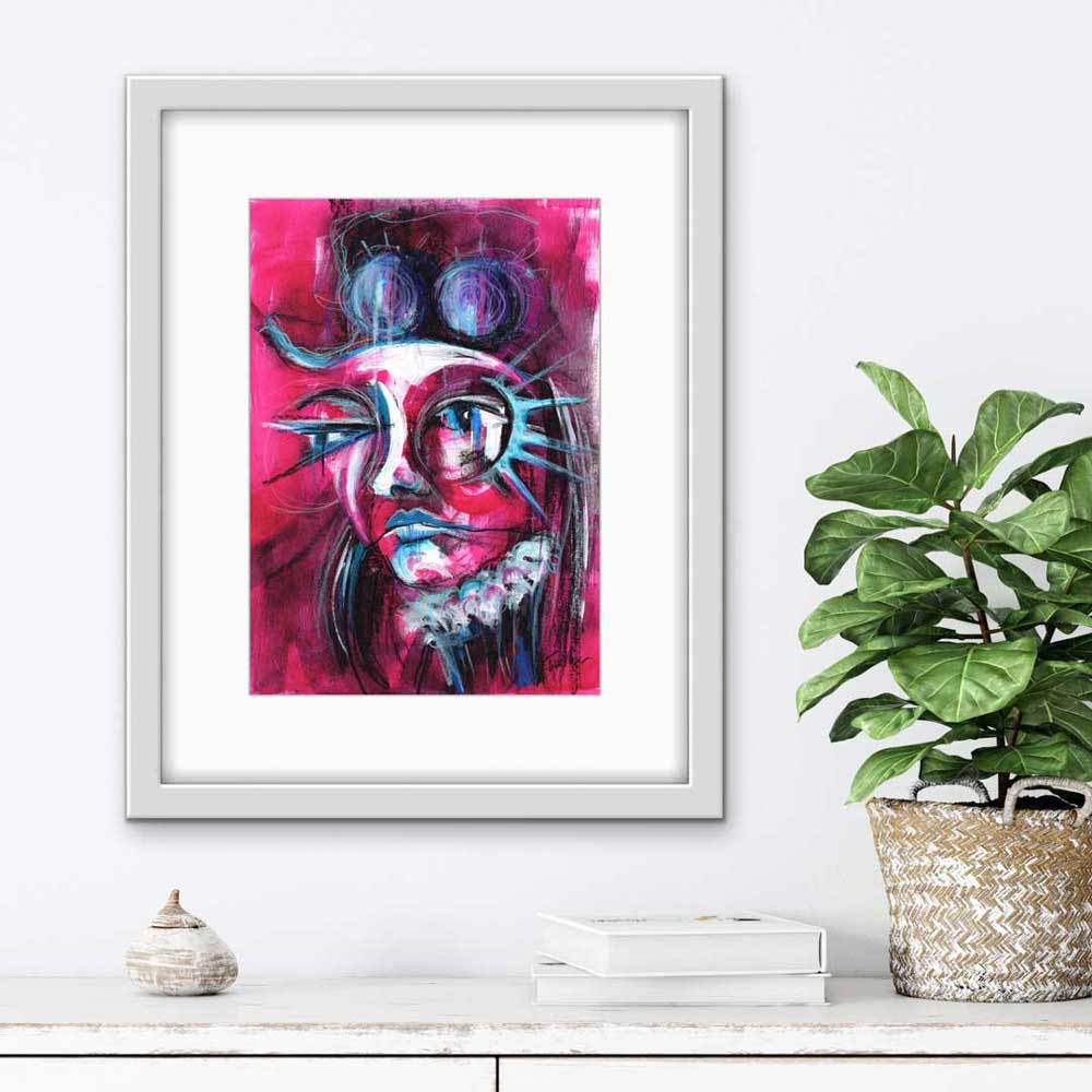 An art print based on an original hand-painted mixed media abstract face painting created by Tara Roskell.