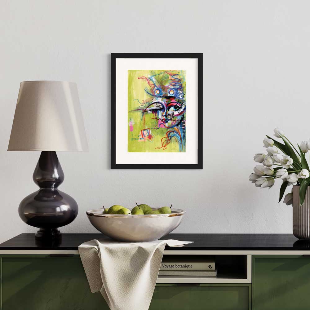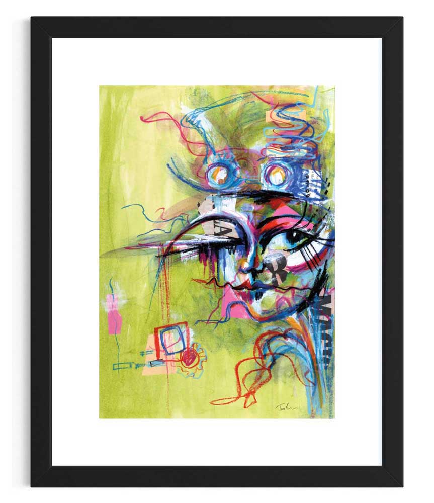 An art print based on an original hand-painted mixed media abstract face painting created by Tara Roskell.