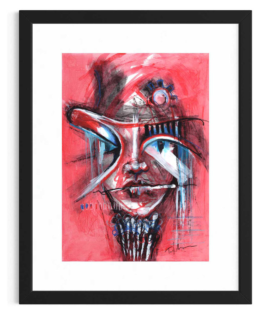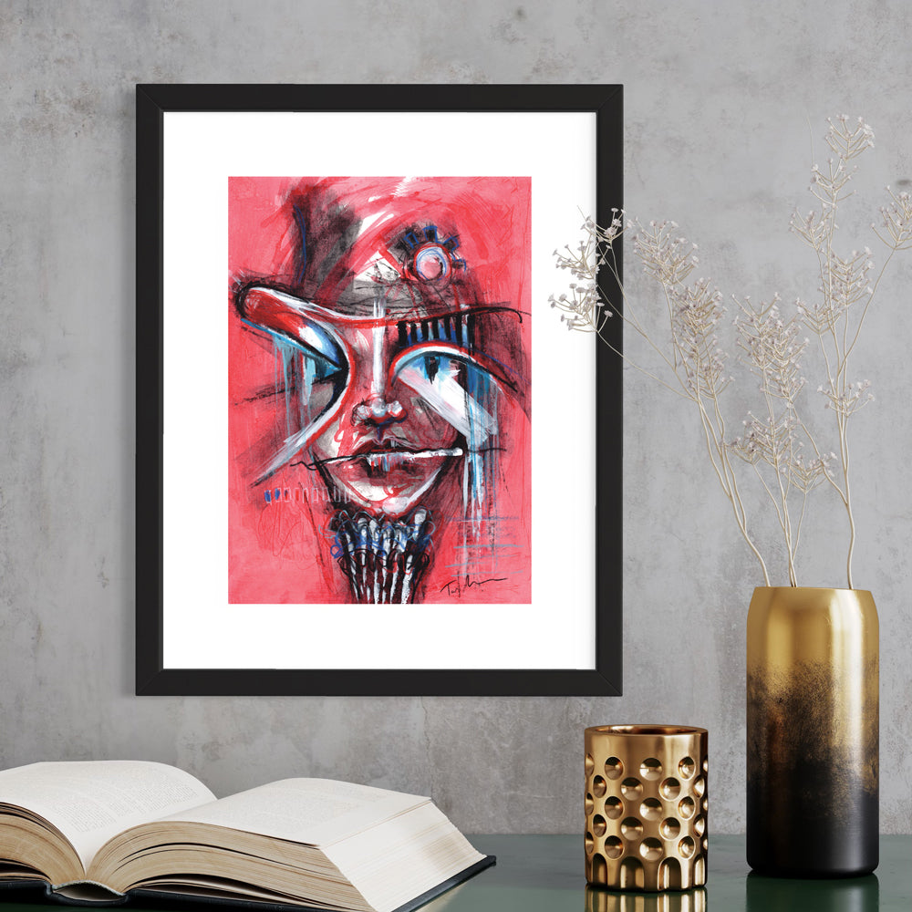 An art print based on an original hand-painted mixed media abstract face painting created by Tara Roskell.