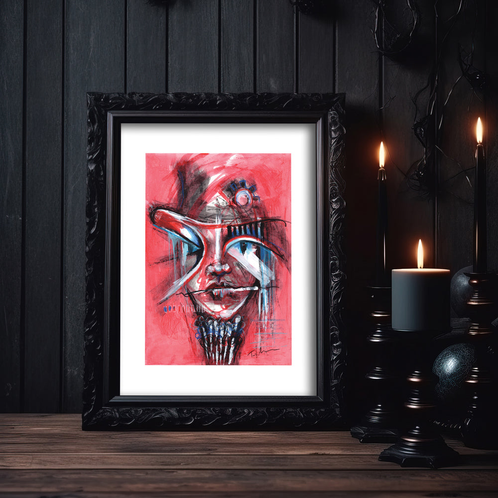 Charged with graffiti energy and a streak of sci-fi imagination, the features push beyond their edges, refusing to stay constrained. This piece is part of the Total Contrast series of abstract faces.