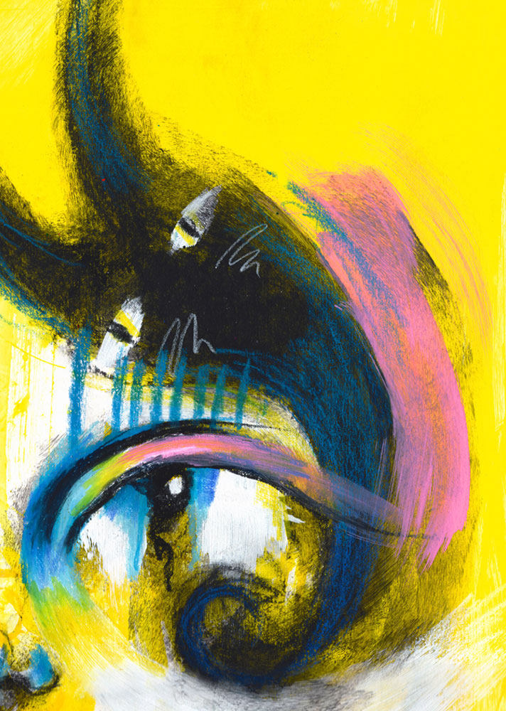 The vibrant yellow background points to optimism, while splashes of pink bring energy and movement.