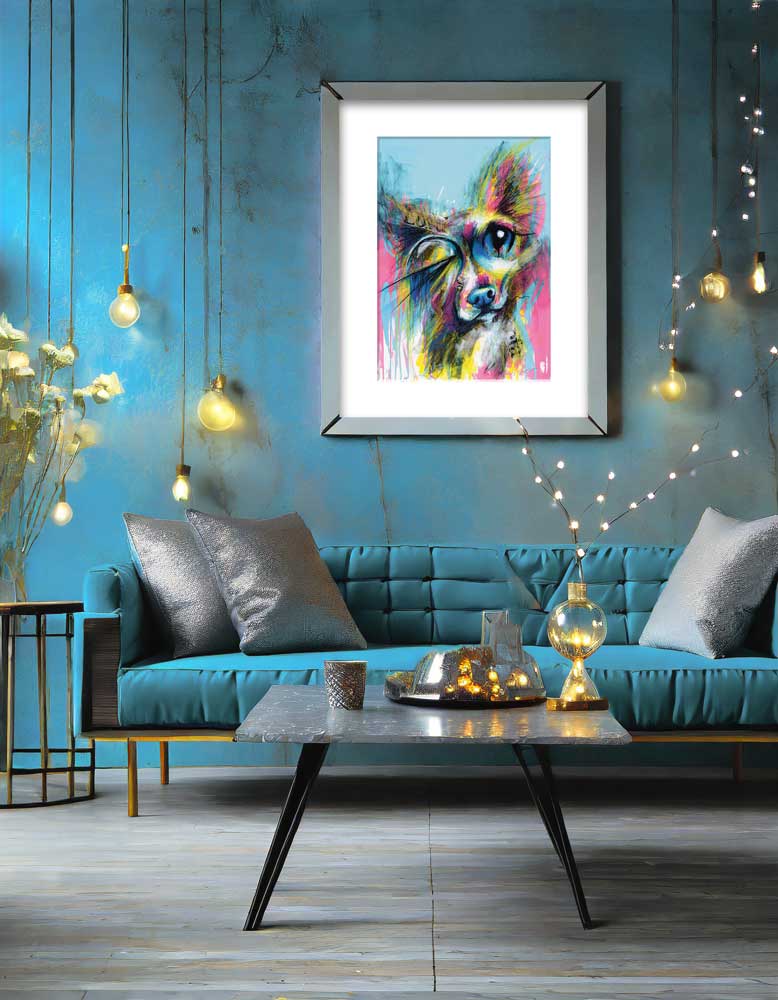 “Lord of the Sofa" is a whimsical and vibrant abstract painting that pays playful homage to our beloved four-legged companions. Created in a funky graffiti-like style, this piece features a small dog as the star of the show, capturing its cute quirky face.