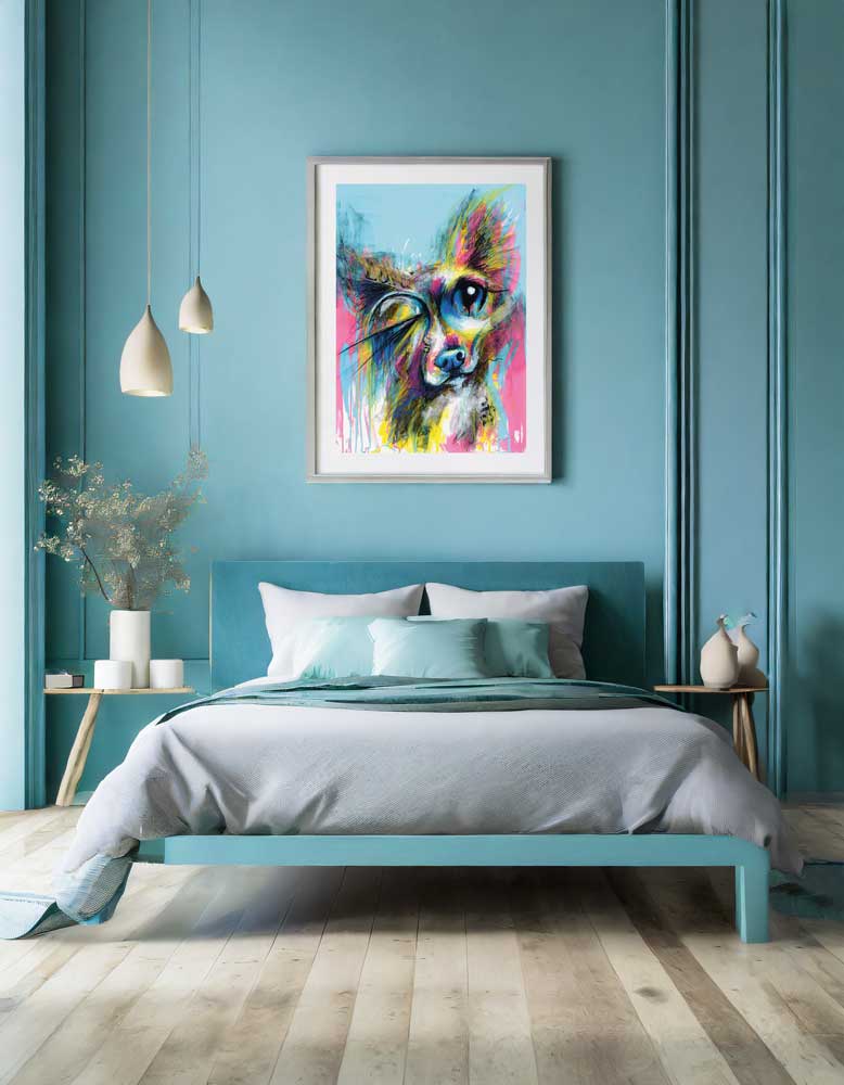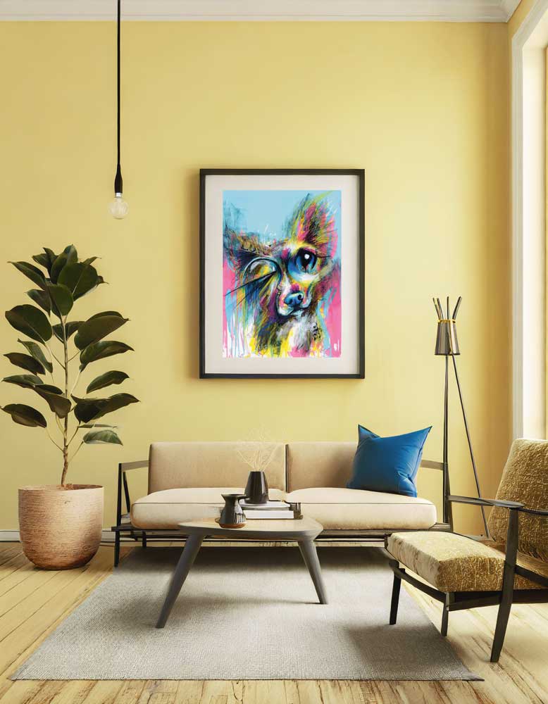 “Lord of the Sofa" is a whimsical and vibrant abstract painting that pays playful homage to our beloved four-legged companions. Created in a funky graffiti-like style, this piece features a small dog as the star of the show, capturing its cute quirky face.