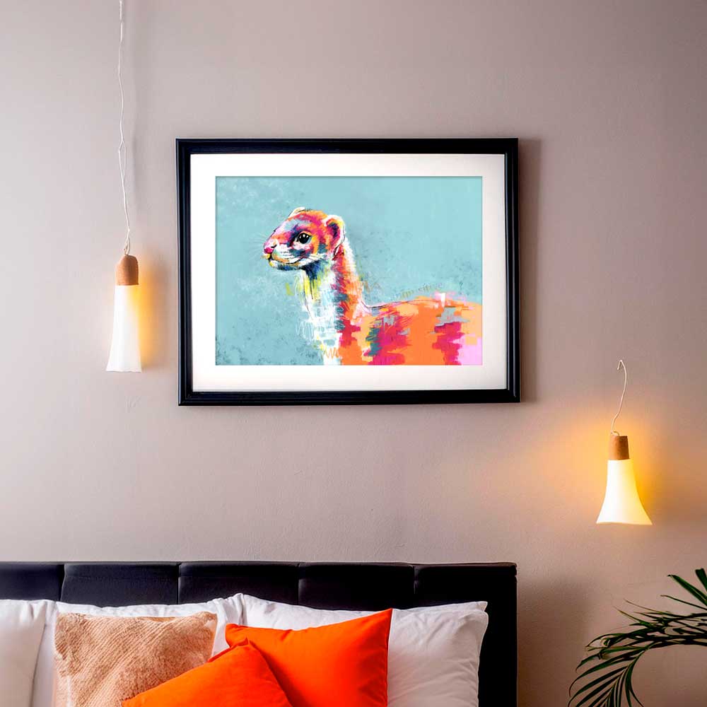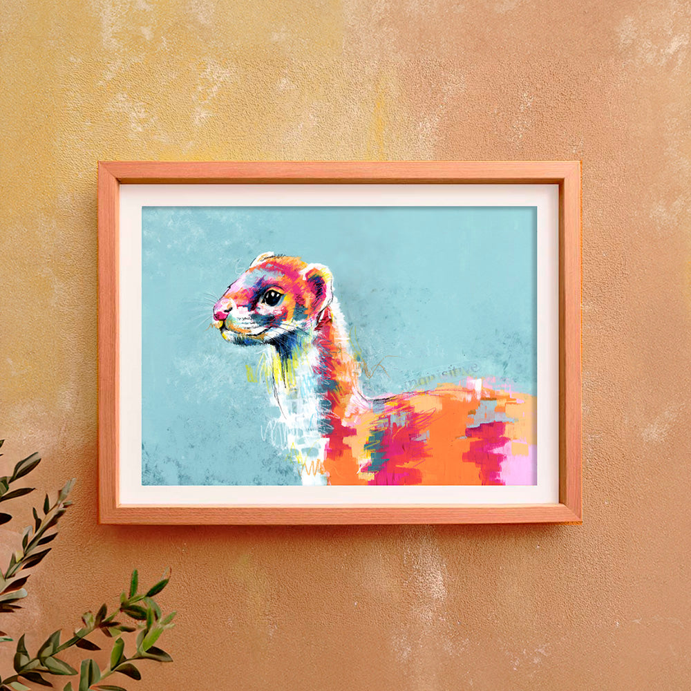 This colourful stoat art print captures the character and charm of the stoat, perfect for fans of contemporary animal art.