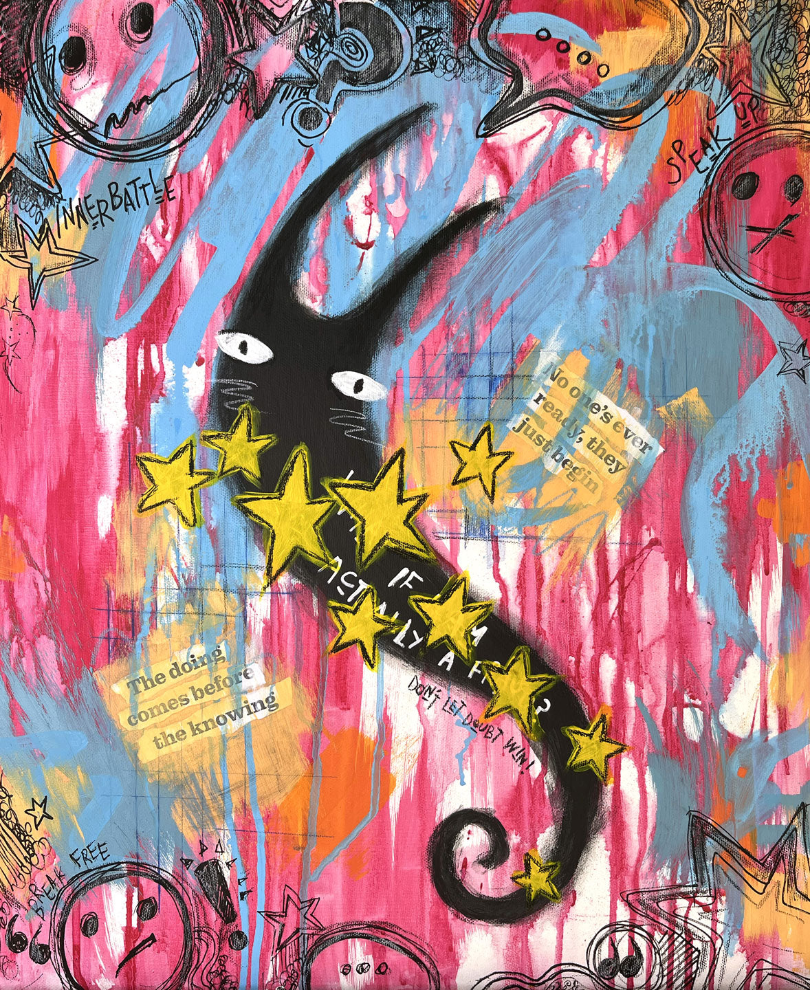 From early faces with Doubt Creatures to today’s Paint Over Doubt series, this project makes self-doubt visible and pushes back against it.